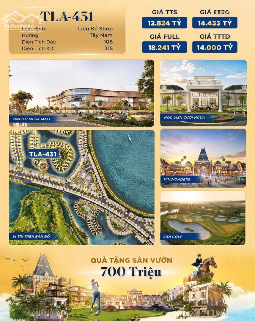 TLA-431 Liền kề Shophouse mặt tiền 6m Nằm trên trục Hoàng Gia, tâm điểm tiện ích - Khu Quý Tộc - Bến du thuyền - VinWonders Vincom chỉ 5 - DT 108m2, dtxd 315m2 chị nhá - TTS 12,753 tỷ | Vay 14,433 tỷ - Cơ chế cao thưởng FULL em Phương Đặc điểm nổi bậtDiện tích :108m2Giá :12,75 tỷ