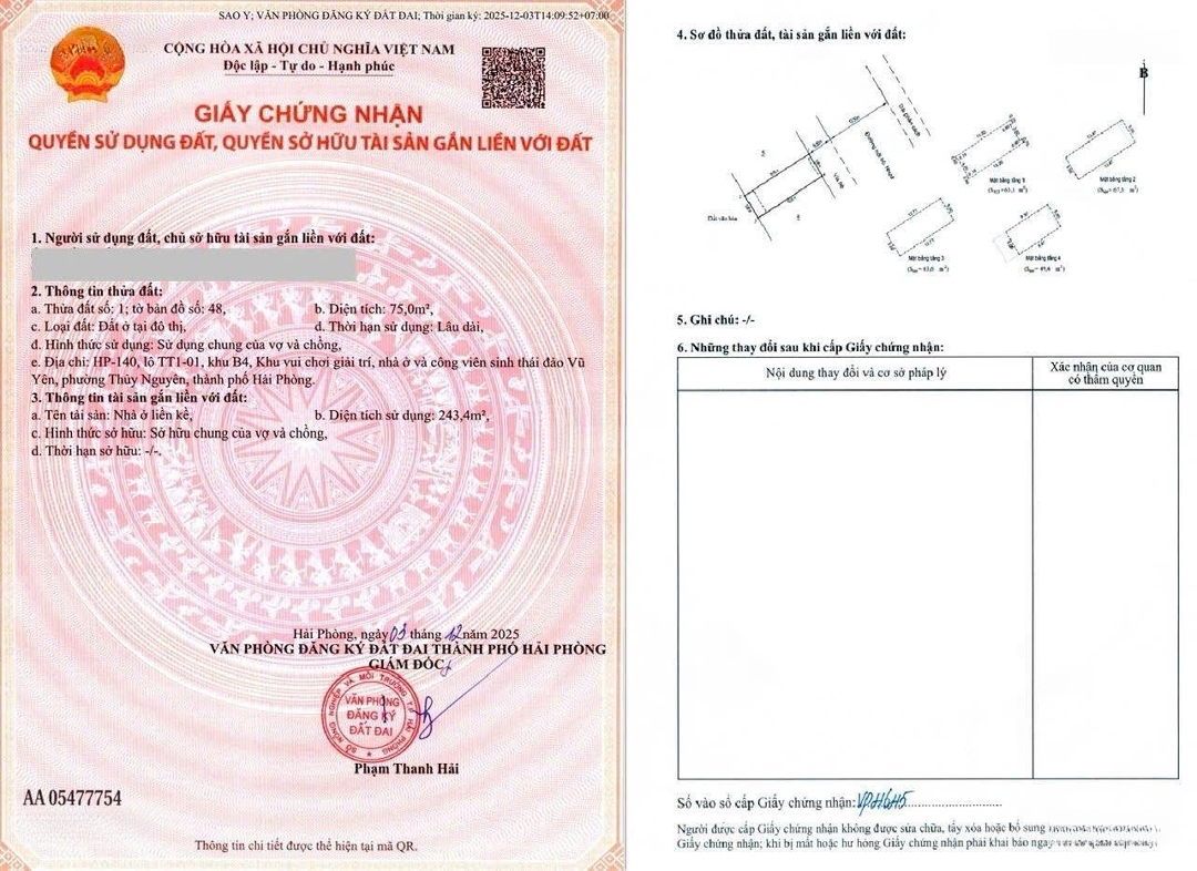 Chính chủ bán Shophouse đối diện Vincom Megamall - Dự án Vinhomes Royal Island Vũ Yên. Mã căn: Shophouse HP - 140. - Diện tích: 75m2, xây 4 tầng. - Hướng: Đông Bắc (mát mẻ). Vị trí kim cương: Nằm trên trục đường Hạnh phúc, huyết mạch của dự án rộng 51m, ngay ngã tư sầm từ cầu Hoàng Gia đi xuống, đối diện TTTM Vincom, trường học liên cấp Vinschool, sau nhà là công viên, trạm sạc ô tô. Kinh doanh tuyệt đỉnh, giao thông đi lại thuận tiện. Pháp lý: Căn duy nhất hiện tại có sổ hồng. Hoàn thiện: 2 tầng, điều hòa, trần tường sàn, TBVS ToTo, thang máy kính lên tầng 3. Sẵn HĐ đang cho thuê: 22tr/tháng (trong 3 năm). Giá bán: 15.3 tỷ (lộc lá).Đặc điểm nổi bậtDiện tích :75m2Mặt tiền :5mGiá :15,3 tỷSố tầng :4 tầngPhòng ngủ :2 phòngPhòng tắm :2 phòngĐường vào :51m