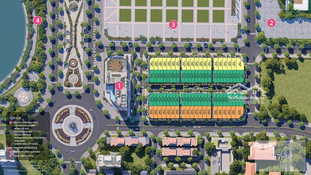 Tên dự án: Khu đô thị mới phố đi bộ trung tâm thành phố Thái Nguyên. Tên thương mại: Central Square Thái Nguyên. Vị trí dự án: Cột đồng hồ - trung tâm phường Phan Đình Phùng, tỉnh Thái Nguyên. Chủ đầu tư: Taseco Land. Diện tích dự án: 6,64ha. Quy mô: 174 căn shophouse 6 tầng. Tầng hầm: 1,9ha dành cho bãi đỗ xe & khu thương mại dịch vụ. Loại hình sản phẩm: Phố đi bộ, nhà phố shophouse. Phố đi bộ: Dài trên 330m, rộng trên 52m. Loại diện tích: 100m - 215m chiều cao 6 tầng. Tổng mức đầu tư: 2.450 tỷ đồng. Pháp lý dự án: Sở hữu lâu dài. Thời gian hoàn thành: Dự kiến đầu năm 2027. Liên hệ E Quyết: chọn căn, nhận chính sách bán hàng.Đặc điểm nổi bậtDiện tích :100m2Giá :Giá thỏa thuận